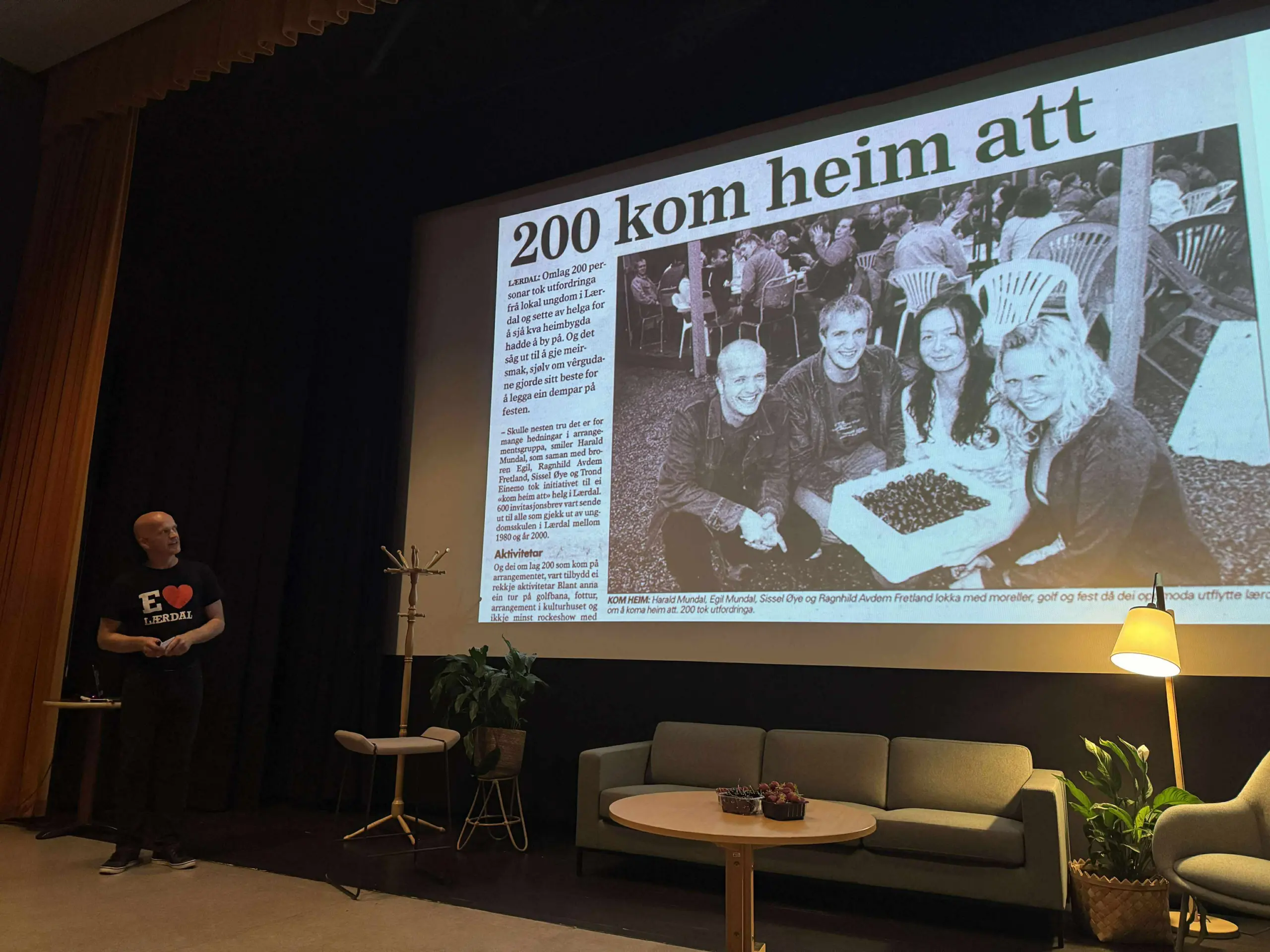 I 2005 stod Lærdal ovanfor eit problem mange norske bygder kjenner godt: folk flytta ut, og folketalet sokk. Svaret vart ikkje berre planar og politikk — det vart ein festival – Kom Heimatt.